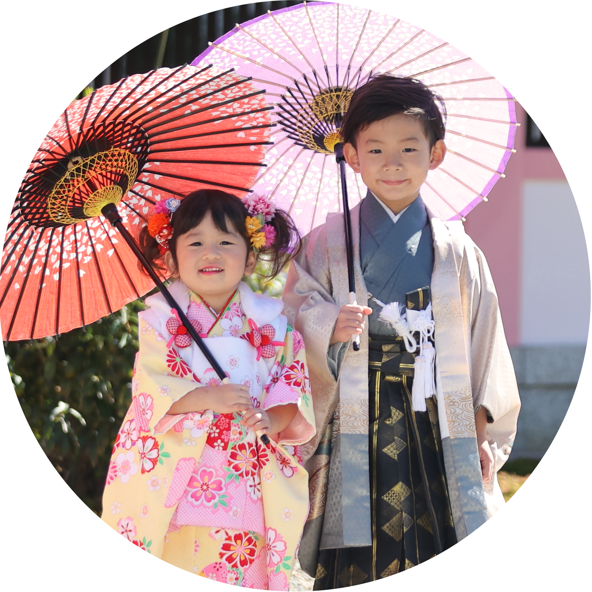 【 衣装 】に【 着付け・ヘアセット(女児のみ) 】と【 撮影 】(データ又は台紙付)が揃ったパックになります